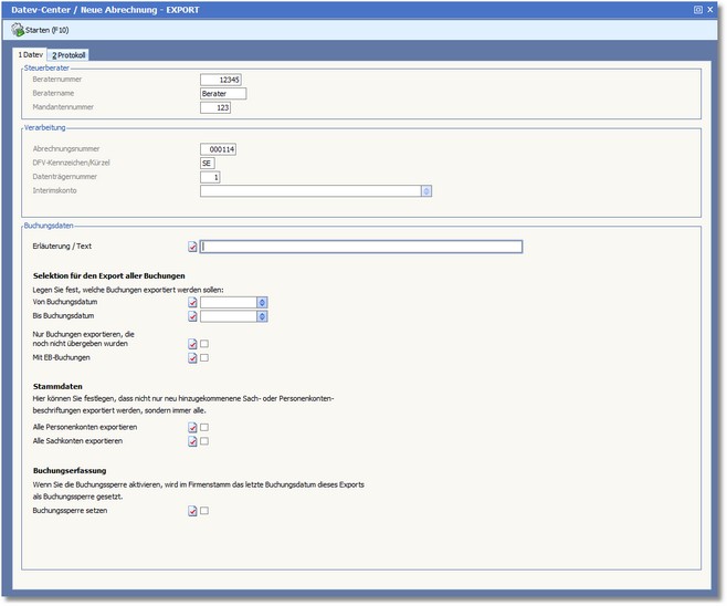Bei einem größeren Datenbestand sollte der Export der Buchungsdaten pro Monat bzw. quartalsweise erfolgen, da sonst u.U. lange Bearbeitungszeiten entstehen können!
