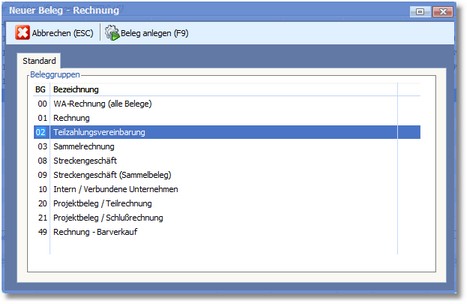 Vor Beginn der Erfassung einer Teilrechnung/Teilzahlung/Schlussrechnung müssen innerhalb der Basisdaten in der Wawi/Fibu entsprechende Zahlungskonditionen angelegt werden.
