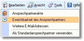 2. Klicken Sie in der Symbolleiste auf <Bearbeiten> und anschließend auf "Erreichbarkeit des Ansprechpartners":