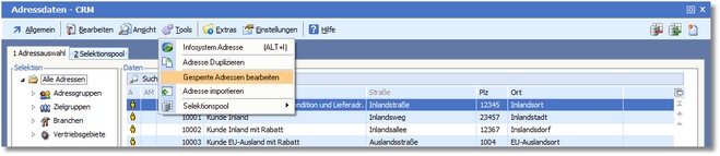 1. Klicken Sie mit der Maus im Adressstamm auf "Tools > Gesperrte Adressen bearbeiten".