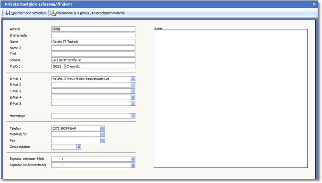 <Übernahme aus Adress-/Ansprechpartnerstamm>