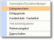 1. In der Wiedervorlagenverwaltung klicken Sie mit der Maus auf den Symbolbutton <CRM/Vertriebssteuerung> und öffnen im Menü den Punkt "Kategorienstamm".