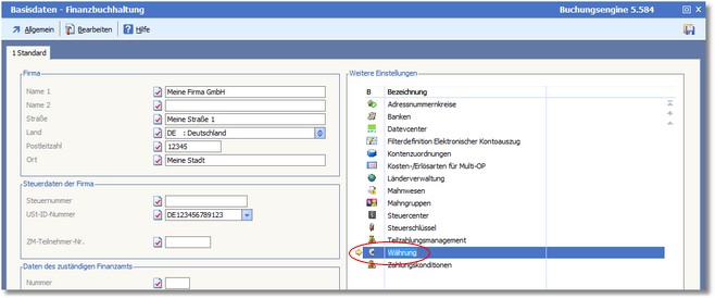Die Basisdaten der Finanzbuchhaltung werden geöffnet.