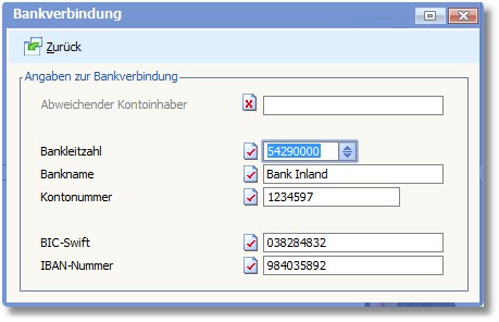 Kontonummer der Bankverbindung des Kunden, Lieferanten oder Erstkontaktes.
