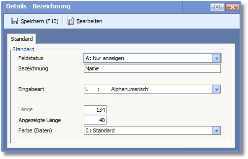 [F10] speichert die Änderungen an den Spalteneigenschaften.