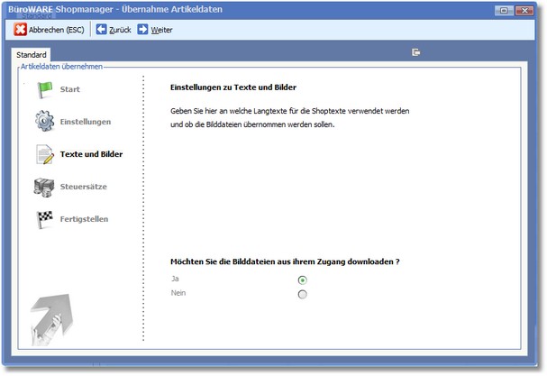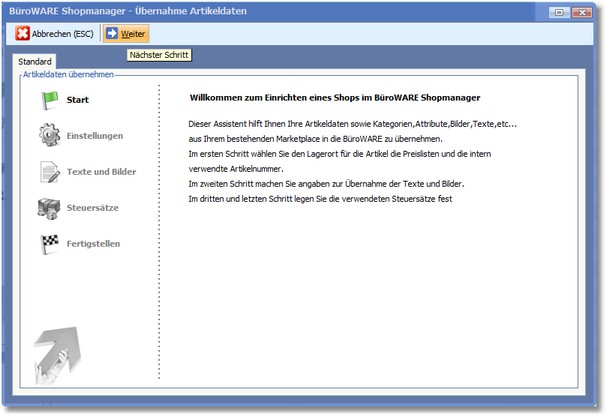 Der Einrichtungsassistent für die Artikelübernahme wird nun gestartet.