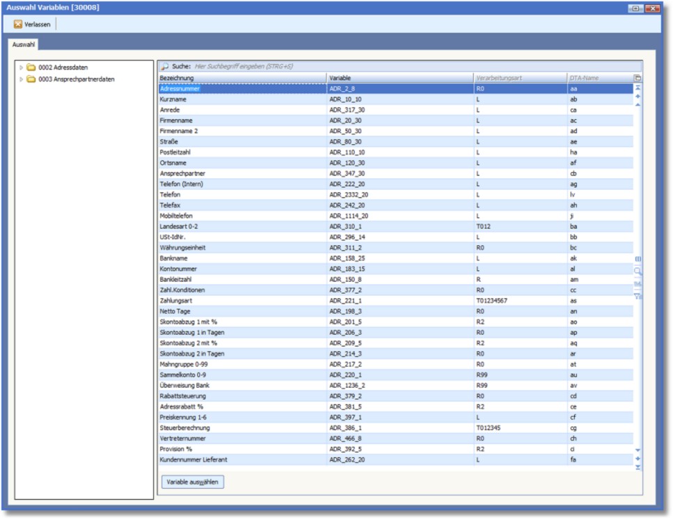 Darunter werden die Verknüpfungsbedingungen erstellt. Dabei klickt man mit der linken Maustaste auf das erste Feld (z.B. Adressnummer) und erhält bereichsbezogen unterschiedliche Standardfelder.