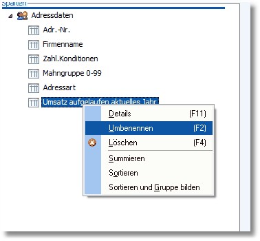 Mit Rechtsklick auf das Feld, welches umbenannt werden soll, öffnet sich dieses PopUp-Menü.