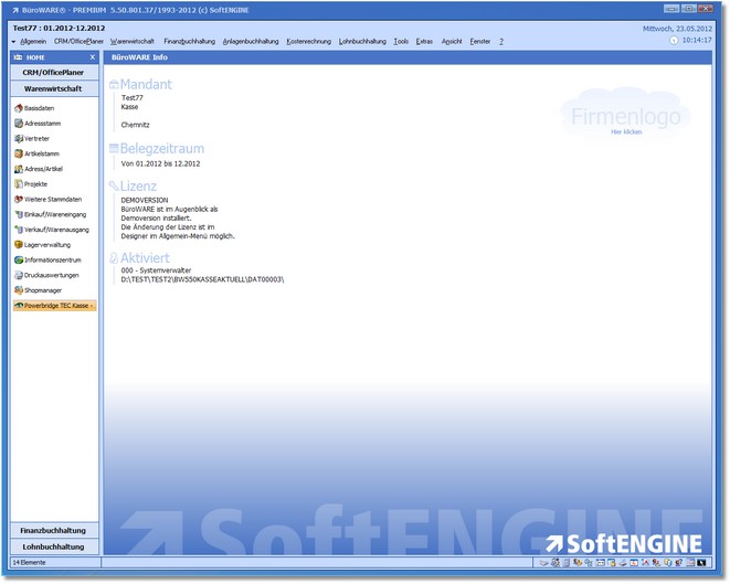 Einrichtungsassistent Öffnet den Dialog zur Einrichtung der BüroWARE-Schnittstelle.