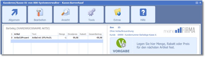 So können Sie eine Retoure über einen Bon durchführen: