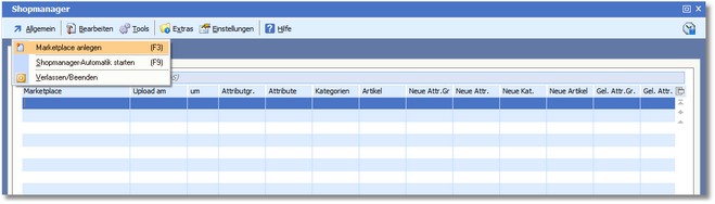 2. Drücken Sie [F3] oder klicken Sie im Menü auf "Allgemein > Marketplace anlegen".