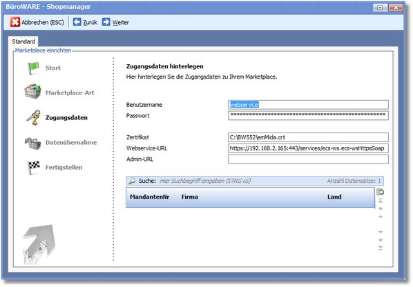 5. Hinterlegen Sie hier die Zugangsdaten zu Ihrem Shop und klicken Sie auf <Weiter>.