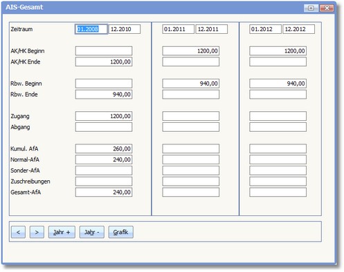 Dieses Feld zeigt die planmäßige Abschreibung im Wirtschaftsjahr.