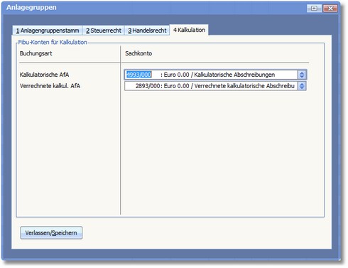 << Hier KLicken um eine Inhaltsübersicht anzuzeigen >> Navigation: Anlagenbuchhaltung > Stammdaten > Anlagegruppen > Die Karteikarte "Kalkulation" |