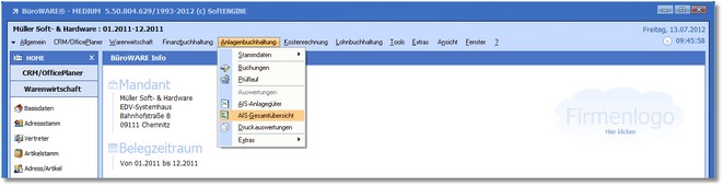 Das Programm kumuliert in einem Berechnungslauf die Daten aller Wirtschaftsgüter und stellt diese in einer Informationsmaske zur Verfügung.