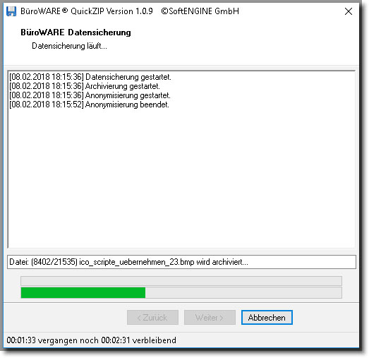 Mit Klick auf [Starten] – wird die Anonymisierung und Archivierung der Daten begonnen.