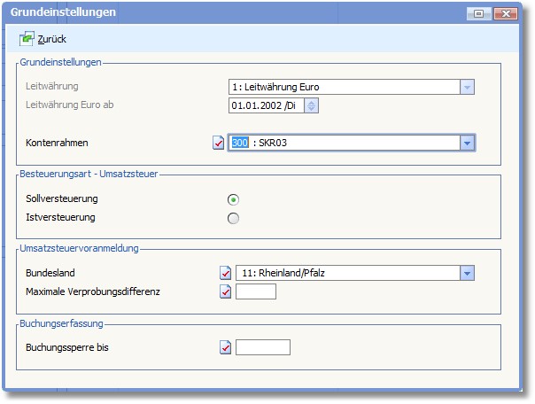 << Hier KLicken um eine Inhaltsübersicht anzuzeigen >> Navigation: Finanzbuchhaltung > Stammdaten > Basisdaten > Basisdaten - Menü "Bearbeiten" > Grundeinstellungen |