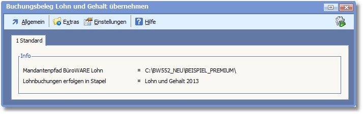 7. Legen Sie ggf. andere Einstellungen für die Übernahme der Lohn- und Gehaltsbelege fest und starten Sie die Belegübernahme mit [F9] bzw. Klick auf den Quicktoolbutton rechts in der Menüleiste.