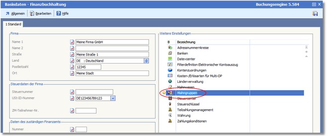 2. Im Bereich "Weitere Einstellungen" doppelklicken Sie nun auf den Eintrag "Mahngruppen".