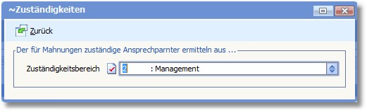 Mit [F5] gelangen Sie in die Auswahltabelle Zuständigkeitsbereiche und können an dieser Stelle die zuständigen Sachbearbeiter bzw. Ansprechpartner hinterlegen. Diese müssen zuvor in der Warenwirtschaft den jeweiligen Zuständigkeitsbereichen zugewiesen werden.
