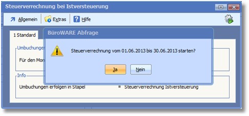 Nach Bestätigung der Abfrage wird die Steuerverrechnung gestartet.
