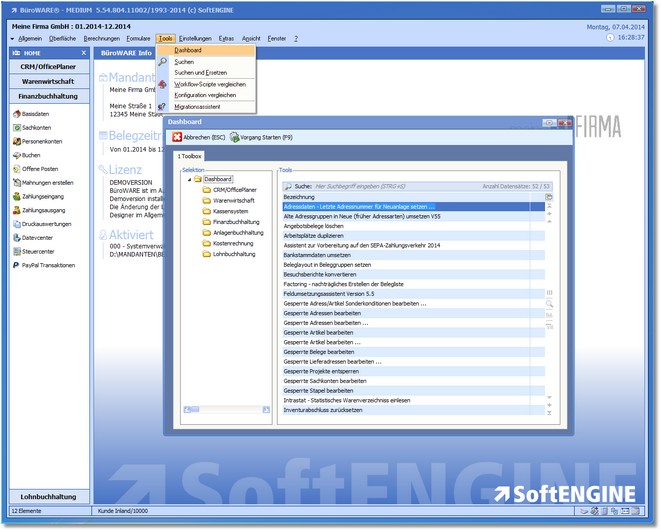 3.Wählen Sie hier den Eintrag "Assistent zur Vorbereitung auf den SEPA-Zahlungsverkehr 2014" und drücken Sie [F9].