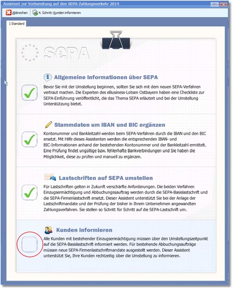 Assistent zur Vorbereitung auf den SEPA-Zahlungsverkehr 2014