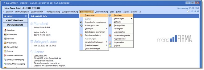 1. Klicken Sie mit der Maus im Hauptmenü auf "Kostenrechnung > Stammdaten > Basisdaten".