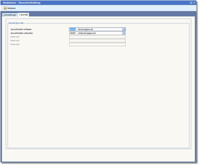 << Hier KLicken um eine Inhaltsübersicht anzuzeigen >> Navigation: Kostenrechnung > Stammdaten > Basisdaten > Karteikarte "Journale" |