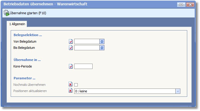 << Hier KLicken um eine Inhaltsübersicht anzuzeigen >> Navigation: Kostenrechnung > Buchen > Betriebsdaten übernehmen und verarbeiten > Daten aus der Warenwirtschaft übernehmen |