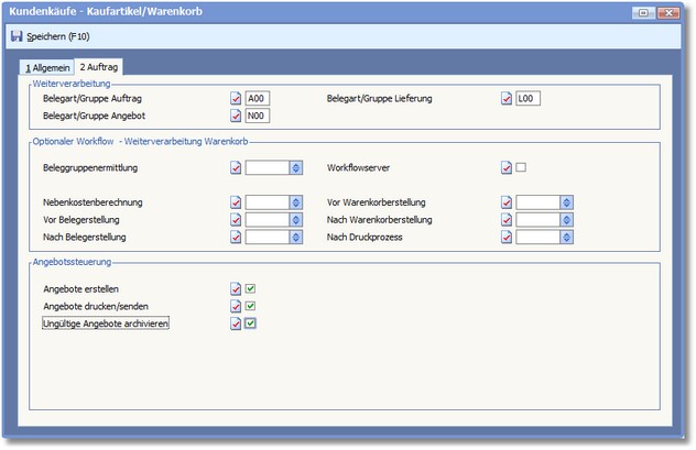 << Hier KLicken um eine Inhaltsübersicht anzuzeigen >> Navigation: Warenwirtschaft > Stammdaten > Basisdaten > Basisdaten - Menü > Warenkorb-Steuerung > Die Karteikarte "Auftrag" |