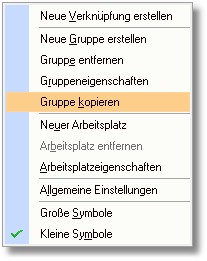 Gruppen können arbeitsplatzübergreifend kopiert werden. Wählen Sie zunächst den Arbeitsplatz, aus dem Sie eine Gruppe kopieren wollen und gehen Sie dann wie folgt vor: