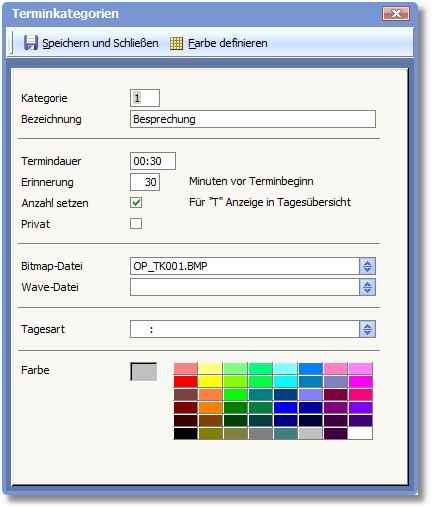 Speichern Mit [F10] wird die Terminkategorie gespeichert und der Dialog geschlossen.