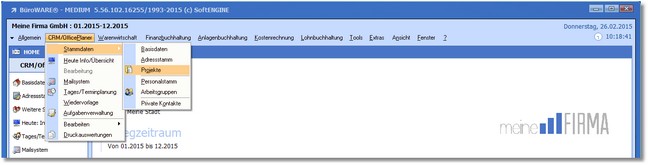 1. Klicken Sie mit der Maus im Hauptmenü auf "CRM/OfficePlaner > Stammdaten > Projekte".