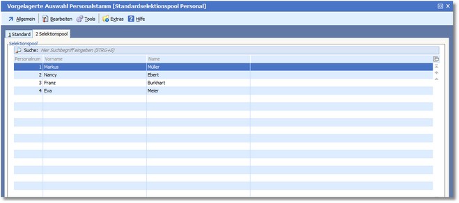 Der Selektionspool kann von Ihnen beliebig zusammengestellt, bearbeitet und wieder gelöscht werden.