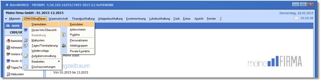 Die Basisdaten - CRM/OfficePlaner werden geöffnet.