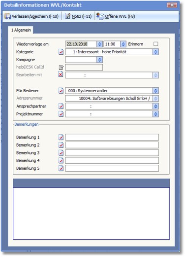 << Hier KLicken um eine Inhaltsübersicht anzuzeigen >> Navigation: OfficePlaner > Wiedervorlagen > Kontaktdetails |