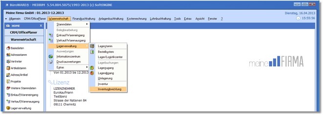 1. Klicken Sie auf den Menüpunkt "Warenwirtschaft > Lagerverwaltung > Inventurabwicklung“.