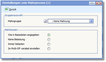 In diesem Bereich wird bestimmt, ob und wie Mahnkosten auf die Adressgruppe umgelegt werden.
