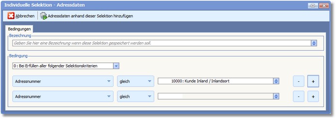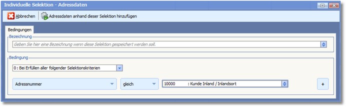 Der Dialog "Individuelle Selektion - Adressdaten" wird geöffnet.