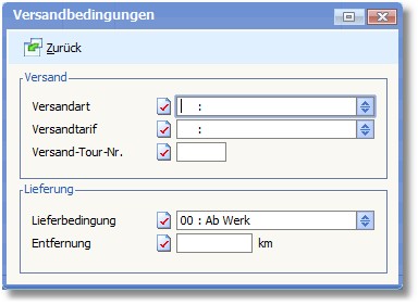 In diesem Dialog können diverse Einstellungen zu den Versandbedingungen vorgenommen werden.