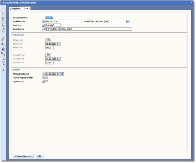 Mit [F10] werden die Eingaben bzw. Änderungen gespeichert und der Dialog beendet. Sie kehren zur Auswahltabelle der Chargen zurück.