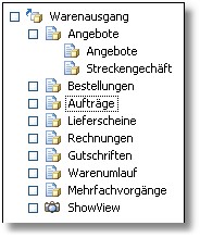 4. Klicken Sie mit der Maus auf das Symbol oder den Text der Belegart/des Selektionspools, um die Datensätze in der Tabelle anzuzeigen, die dieser Belegart bzw. dem Selektionspool angehören oder Sie navigieren mit den [PFEIL]-Tasten innerhalb der Baumstruktur. [STRG]+[PFEIL RECHTS] öffnet die untergeordneten Gliederungsebenen, [STRG]+[PFEIL LINKS] blendet alle untergeordneten Ordner aus. Mit der Tastenkombination [STRG]+[PFEIL NACH UNTEN] navigieren Sie in der Baumstruktur abwärts, [STRG]+[PFEIL NACH OBEN] bewegt den Cursor aufwärts.