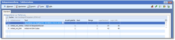 << Hier KLicken um eine Inhaltsübersicht anzuzeigen >> Navigation: Warenwirtschaft > Belegbearbeitung > Wandlung, Teilwandlung und Duplikation > Wandlung/Duplikation in der Belegtabelle > Teilwandlung |
