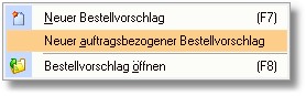 2. Klicken Sie mit der Maus auf den Menüpunkt: "Neuer auftragsbezogener Bestellvorschlag".