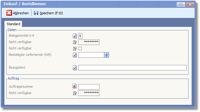 << Hier KLicken um eine Inhaltsübersicht anzuzeigen >> Navigation: Warenwirtschaft > Belegbearbeitung > Verkauf/Warenausgang > Positionserfassung Warenausgang > Positionserfassung - Menüleiste > Einkauf/Bestellwesen |