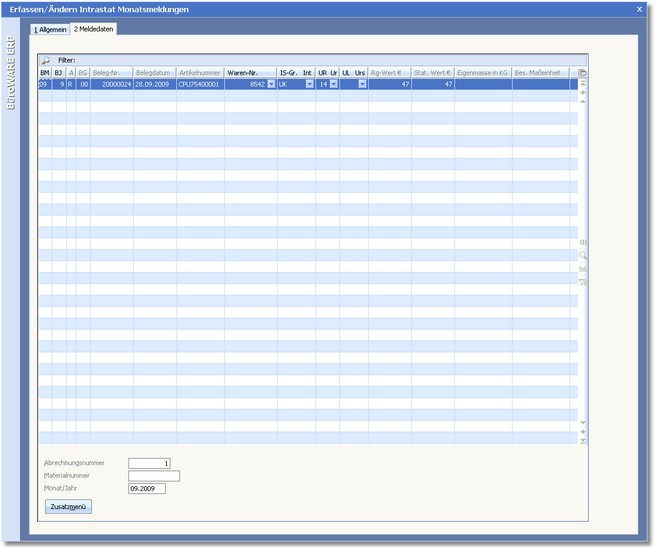 << Hier KLicken um eine Inhaltsübersicht anzuzeigen >> Navigation: Warenwirtschaft > Extras > Intrahandelsstatistik > Bearbeiten von Monatsmeldungen > Die Karteikarte "Meldedaten" |