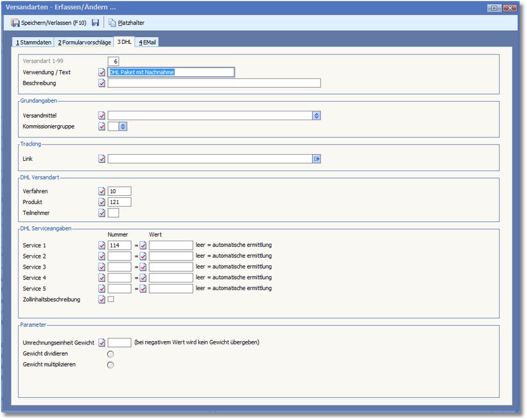 Navigation: Warenwirtschaft > Lagerverwaltung > Lager/Logistikcenter > Logistiker "DHL" (EasyLog) >