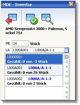 << Hier KLicken um eine Inhaltsübersicht anzuzeigen >> Navigation: Warenwirtschaft > Lagerverwaltung > Lager/Logistikcenter > Mobile Datenerfassung (MDE) > Lagerinventur |