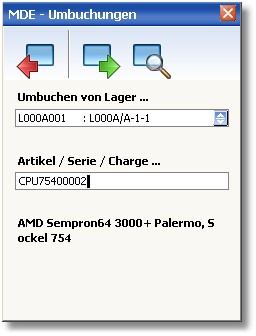 << Hier KLicken um eine Inhaltsübersicht anzuzeigen >> Navigation: Warenwirtschaft > Lagerverwaltung > Lager/Logistikcenter > Mobile Datenerfassung (MDE) > Lagerumbuchung |
